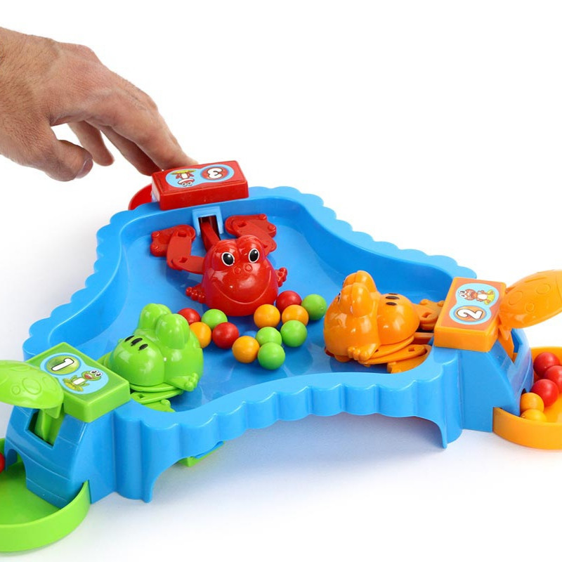 فشار دادن یک اهرم و دیدن این که چگونه قورباغه به سمت جلو میپرد و توپهای کوچک را می بلعد هر کودکی را به وجد می آورد.قورباغه شکمو چنین مکانیزمی دارد.روی یک صفحه پلاستیکی برکه مانند تعدادی توپ کوچک رنگی ریخته میشود و سه قورباغه که در سه گوشه برکه قرار دارند با فشار اهرم به جلو میپرند و توپ ها را می بلعند.بازی بسیار پر هیجان برای کودکان که می توان از آن در جهت اهداف آموزشی از جمله آموزش اعداد و شمارش هم استفاده کرد.