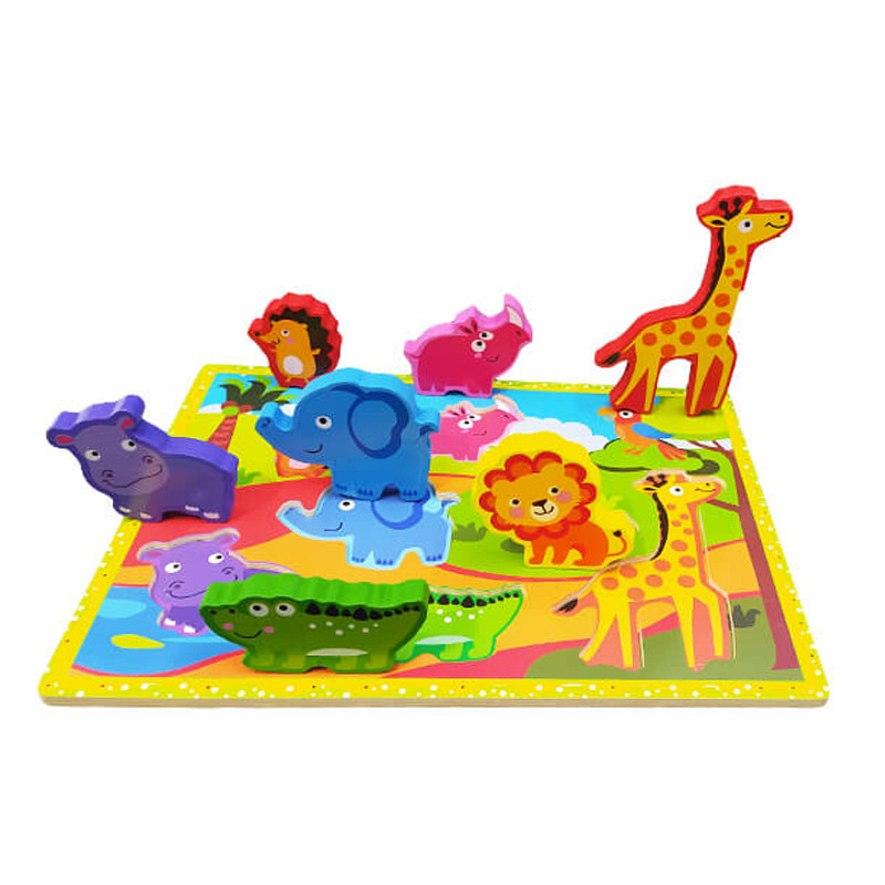 بازی پازل 1 تکه طرح حیوانات جنگل ، یک پازل آموزشی مناسب کودکان 8 ماه به بالا است. برای آموزش پازل به کودک بهتر است متناسب با سن کودک از پازل های ساده تر شروع کنیم و گام به گام او را با پازلهای سخت تر آشنا کنیم.پازلهای جانمایی ابزار بسیار مناسبی برای آموزش مفاهیم ابتدایی به کودکان هستند.این مدل از پازلها ساخته شده از چوب مرغوب و رنگ طبیعی بوده و هیچ گونه لبهی تیزی ندارد.