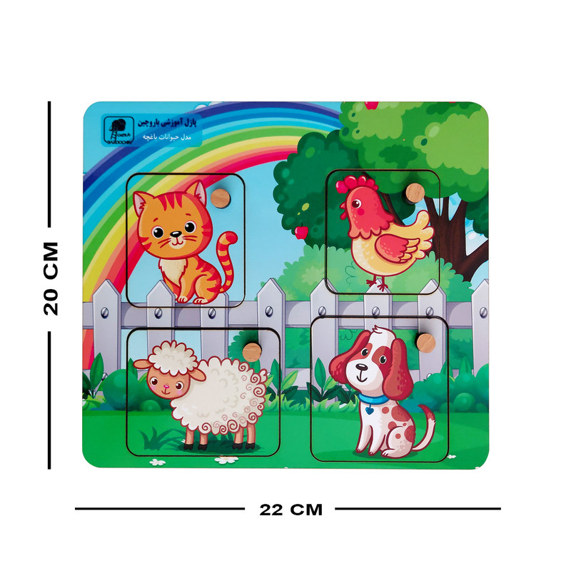 با توجه به گروه هدف این پازل که کودکان زیر 2 سال می باشد، زیر پازل شکل حیوانات چاپ شده و کودک باید قطعه مربوط به هر حیوان را در جای خود قرار دهد. شکل قطعات نیز به تناسب سن کودک ساده طراحی شده تا به راحتی در جای خود قرار گیرد.