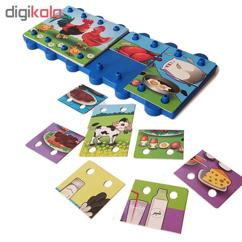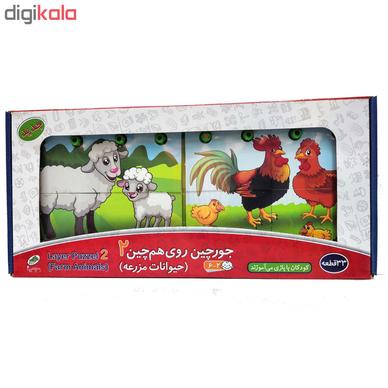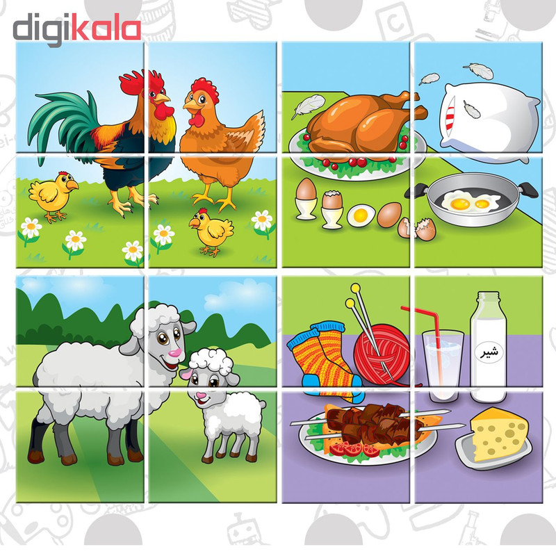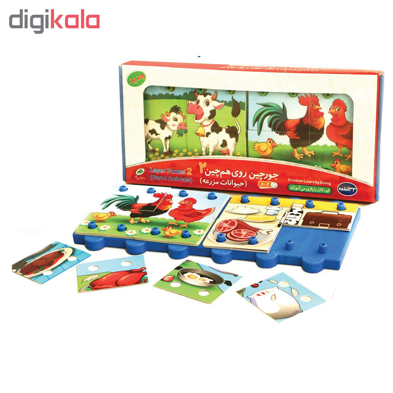 این جورچین از یک صفحه پلاستیکی و 32 قطعه مقوایی با تصاویر حیوانات مختلف وفرآورده های آنها( گاو، گوسفند، مرغ وشترمرغ) تشکیل شده است وکودکان2تا6ساله بااین بازی جذاب باحیوانات مزرعه ومحصولات وفرآورده های آنهاآشنامی شوند.همچنین همراه بابازی وقصه گویی دایره لغات وکلمات کودکان گسترده میشودو به تقویت قوه تخیل کودک نیزکمک میکند.