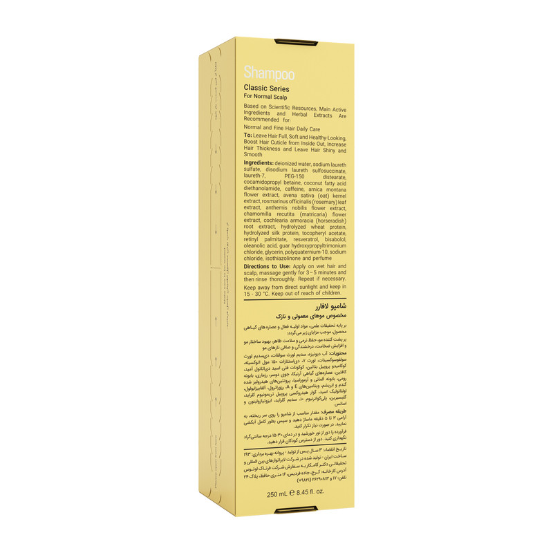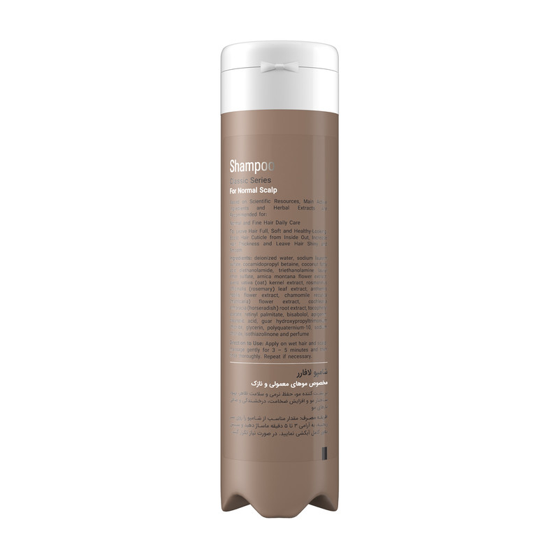 شامپوی موهای معمولی بر اساس نیازها و مشکلات موها و پوست های معمولی پایه گذاری شده است. این محصول حاوی پروتئین های محافظت کننده و استحکام دهنده ساختمان مو هستند. سبب افزایش حجم و ضخامت تارهای مو به همراه تغذیه و تقویت مو و مؤثر بر فولیکول مو هستند. این محصول نسل جدیدی از شامپوها مطابق با تکنولوزی روز اروپا است که به دلیل دارا بودن عوامل آنتی اکسیدان و محافظ، سبب تأخیر در آلودگی مجدد تارهای مو می شود. براق کنندگی و خوش حالت کردن موهای معمولی و نازک را به خوبی انجام می دهد، PH این محصول به گونه ای طراحی شده که با ساختار پوست ها و موهای معمولی و نازک متناسب می باشد. (PH~7) ویتامین های محلول در آب B1,2,3,5,6,9,C,E موجود در این محصول به افزایش متابولیسم سلولی و تقویت و بازسازی ریشه و ساقه موها کمک می کند و از آنها در برابر رادیکال های آزاد و عوامل مخرب محیطی همانند نور خورشید محافظت می کند. ریز مکمل های کمیاب معدنی Ca,Fe,Mg,Zn,Mn نیازهای تغذیه ای و متعادل کننده پوست و موهای معمولی و نازک را برطرف می نماید. این محصول حاوی مناسب ترین مکمل های طبیعی می باشد.