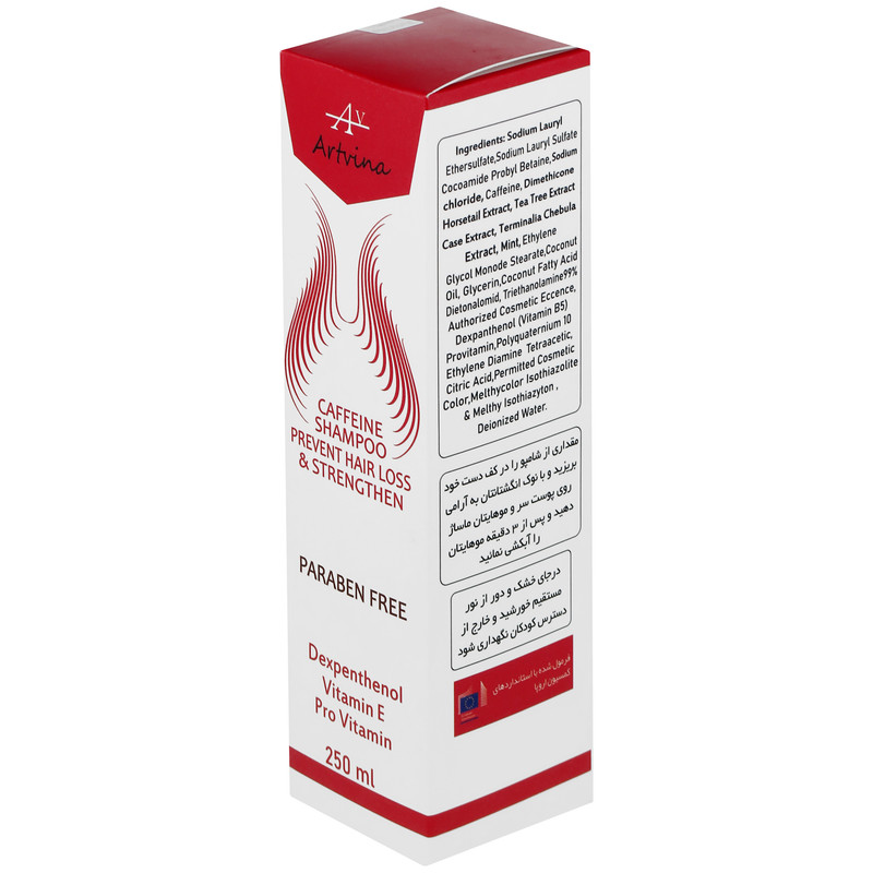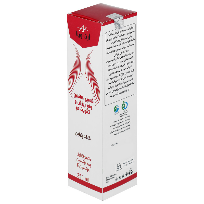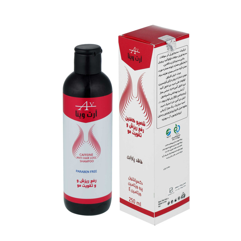 ریزش مو یک عارضه بسیار متداول است که به دلایل مختلفی از جمله فاکتورهای ارثی، تغییرات هورمونی، استرس و سوء تغذیه رخ میدهد. شامپو کافئین آرت وینا ، فرمولاسیونی کارآمد برای تقویت و سلامت موها است. این شامپو غنی از ماده موثره کافئین و قهوه،ماینوکسیدیل،آلوئه ورا،عصاره مورد،عصاره گیاه دم اسب، عصاره هلیله سیاه،عصاره بابونه،مینت و... میباشد.کافئین وماینوکسیدیل وعصاره های گیاهی موجوددرشامپو به خوبی جلوی ریزش مو را میگیرد علاوه بر این با فراهم آوردن بستر مناسب، کمک به رویش مجدد تارهای مو میکند.