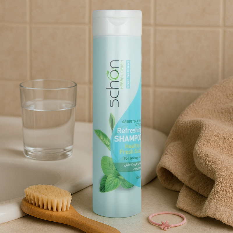 شامپو مو بانوان مخصوص موهای چرب شون مدل Green Tea & Mint حجم 400 میلیلیتر