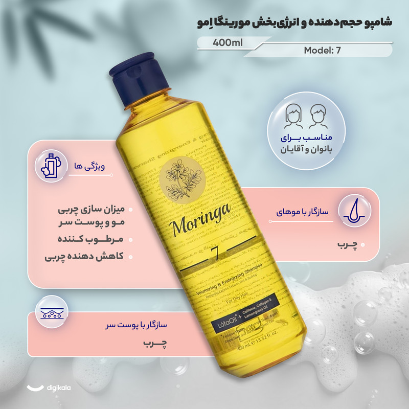 شامپو مو مورینگا امو مدل Lemongrass مناسب برای موهای چرب حجم 400 میلی لیتر