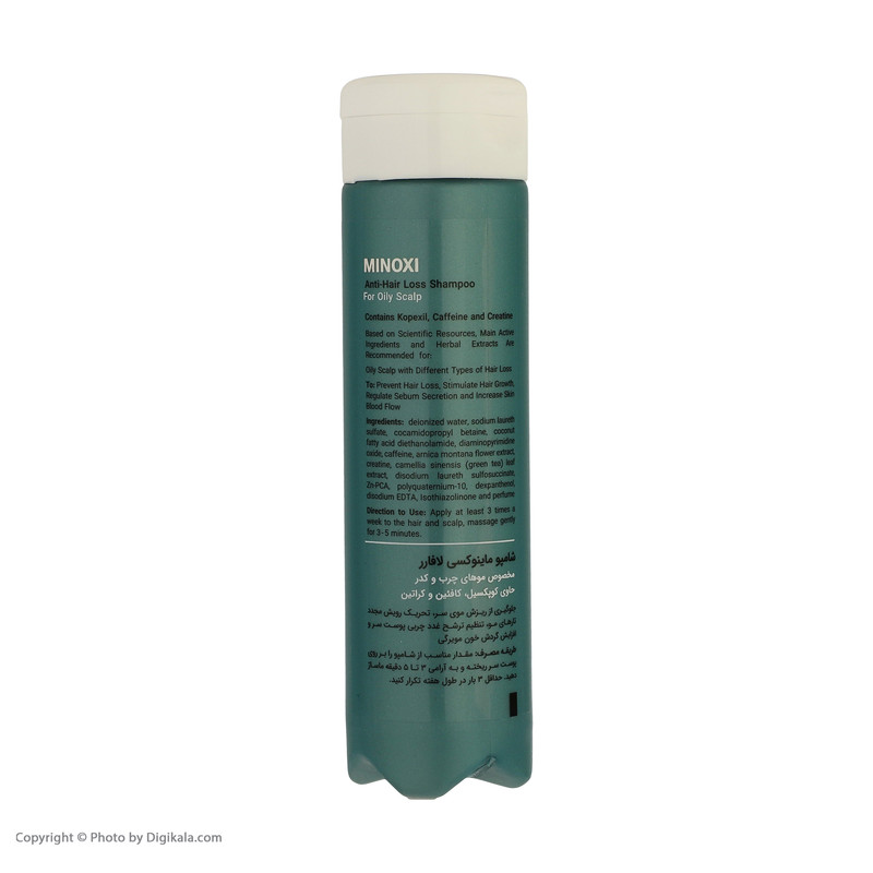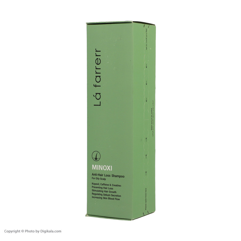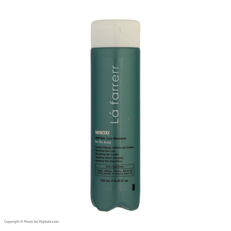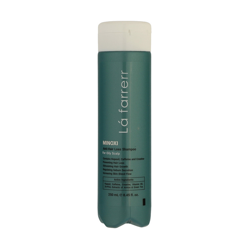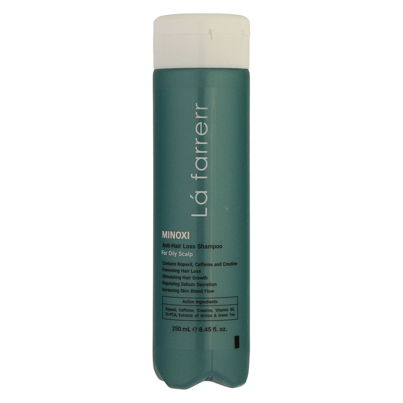 شامپو ضد ریزش ماینوکسی لافارر مخصوص موهای چرب و کدر حاوی ماینوکسیدیل، کافئین، کراتین، Zn-PCA ، عصاره چای سبز و ویتامین B5 میباشد که موجب اثر هم افزایی ماینوکسیدیل و کافئین در پیشگیری از ریزش مو، قدرت جذب سریع و تام مواد به دلیل وجود کافئین، تحریک رویش مجدد تارهای مو، ممانعت از تولید DHT و جلوگیری از ریزش موی ارثی یا آندروژنیک میگردد، عصاره های گیاهی به کار رفته در شامپو باعث تنظیم ترشح غدد چربی پوست سر، حالت پذیری، افزایش حجم موها و افزایش گردش خون مویرگی میشوند.