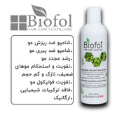 شامپو ضد ریزش مو بایوفول صدر در صد ارگانیک بوده درمان کننده شور سر و کنترل کننده خشکی و چربی مو می باشد.