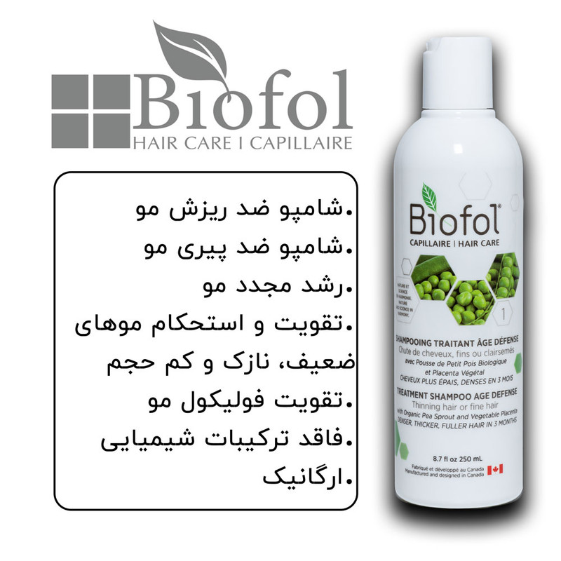 شامپو ایج دیفنس بایوفول کانادا منجر به رطوبت رسانی به مو و افزایش لطافت و درخشندگی مو شده و موهای نازک و کم پشت ضعیف و آسیب دیده را درمان می کند.