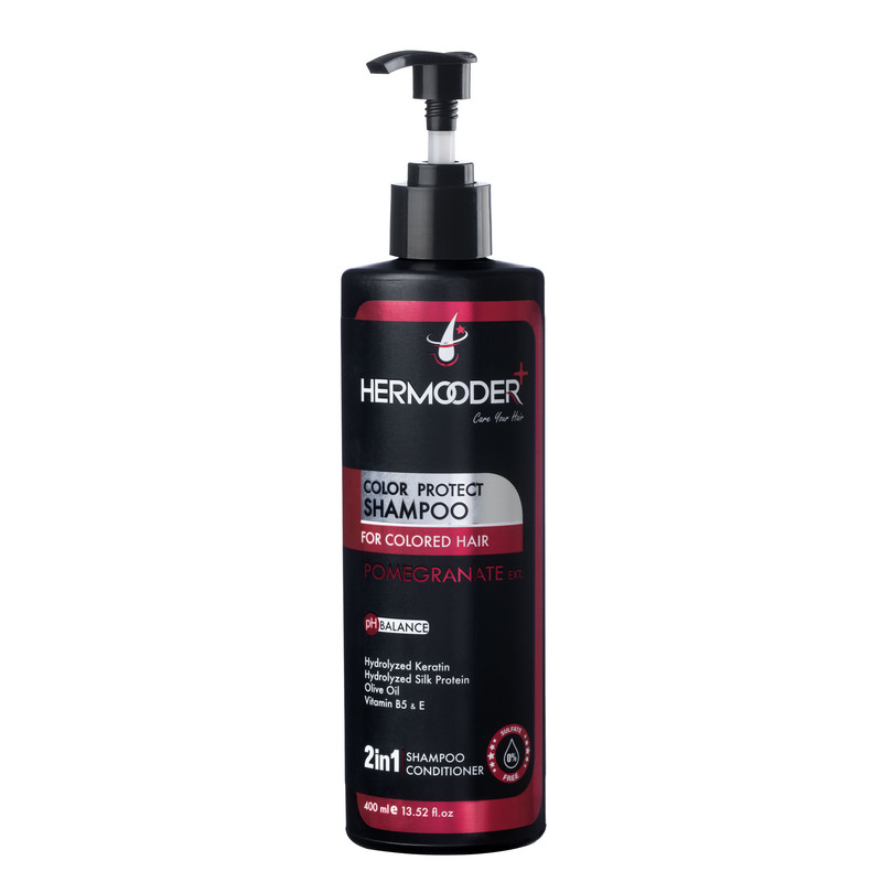 شامپو مو هرمودر مدل POMEGRANATE مناسب برای موهای رنگ شده حجم 400 میلی لیتر