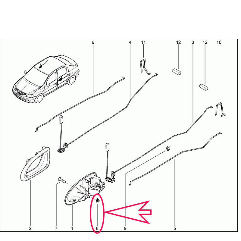 خار مهره دار پشت دستگیره درب سمت داخل خودرو