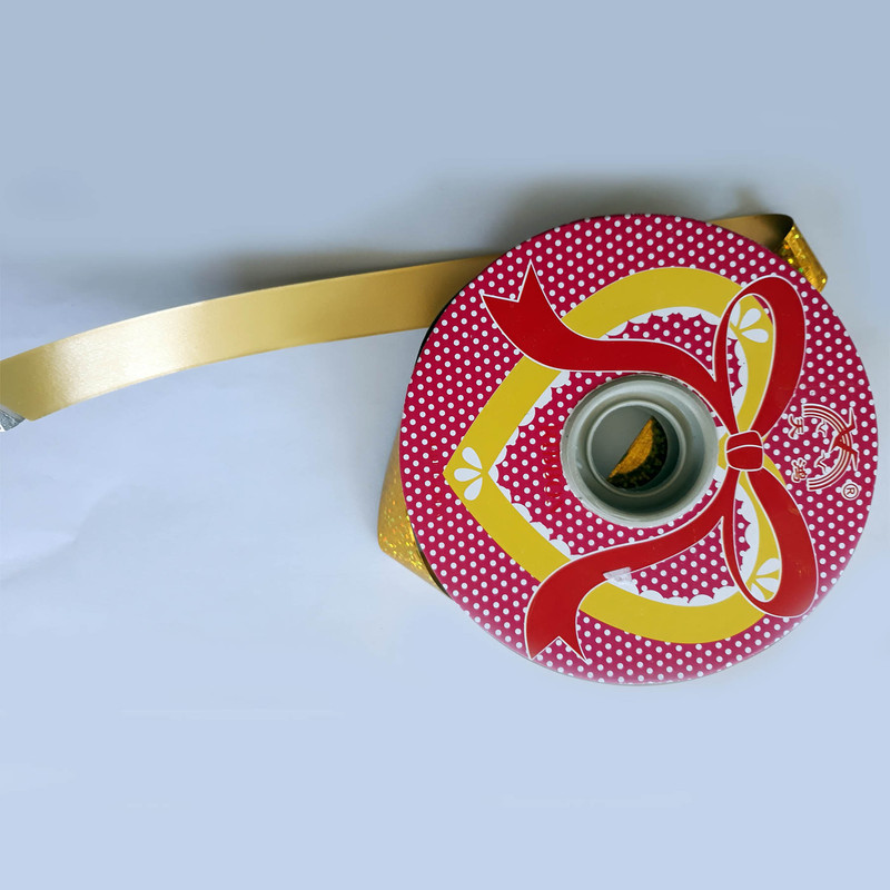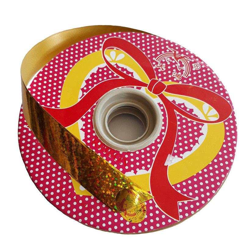 1 حلقه روبان کاغذی طلایی عرض 2 سانتی متر با قابلیت استفاده دو رو با طول 91 متر (100 یارد) قابل استفاده برای تزئین شیرینی، کادو، گل، شیشه سکوریت و ...
