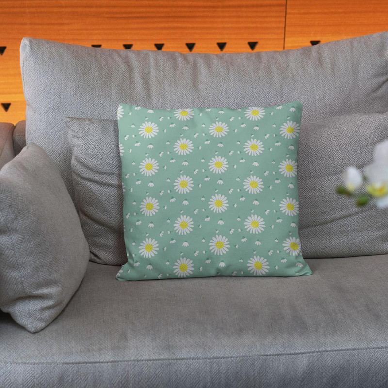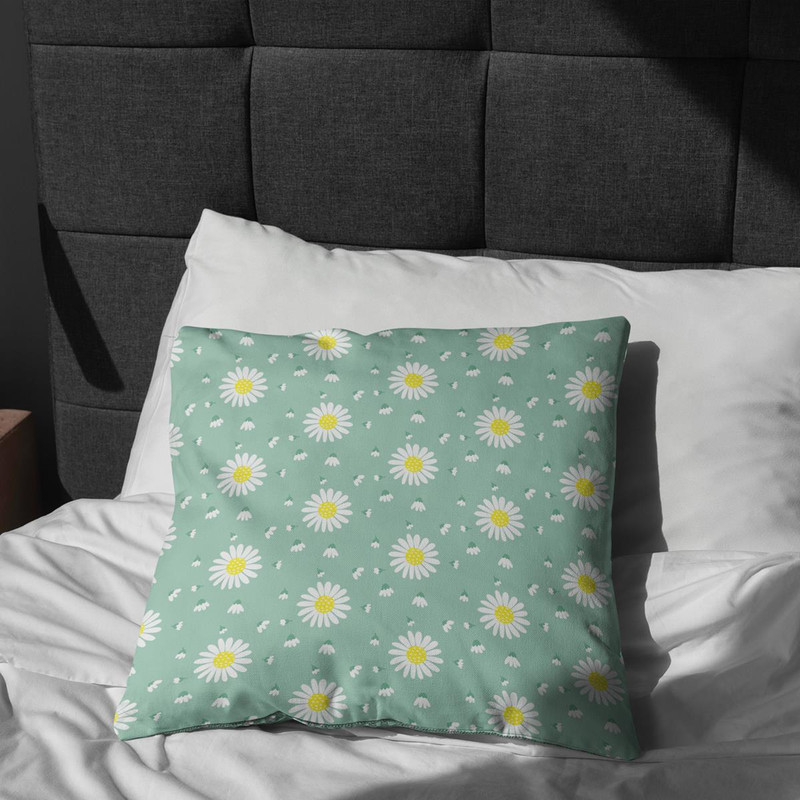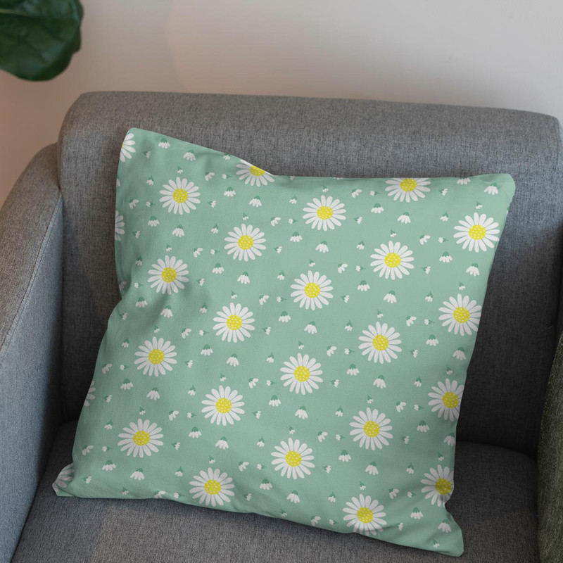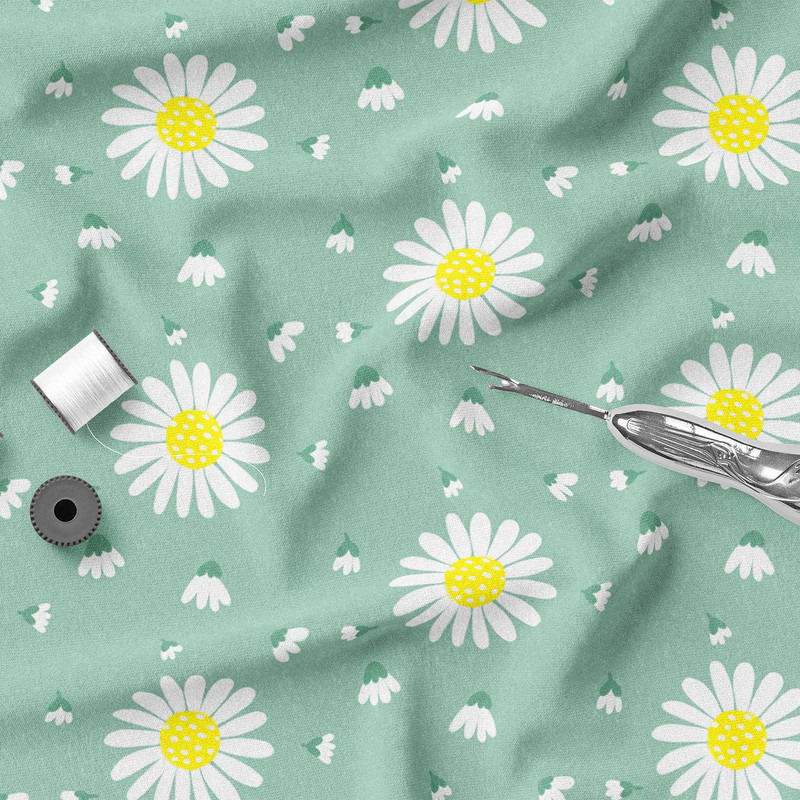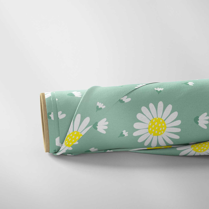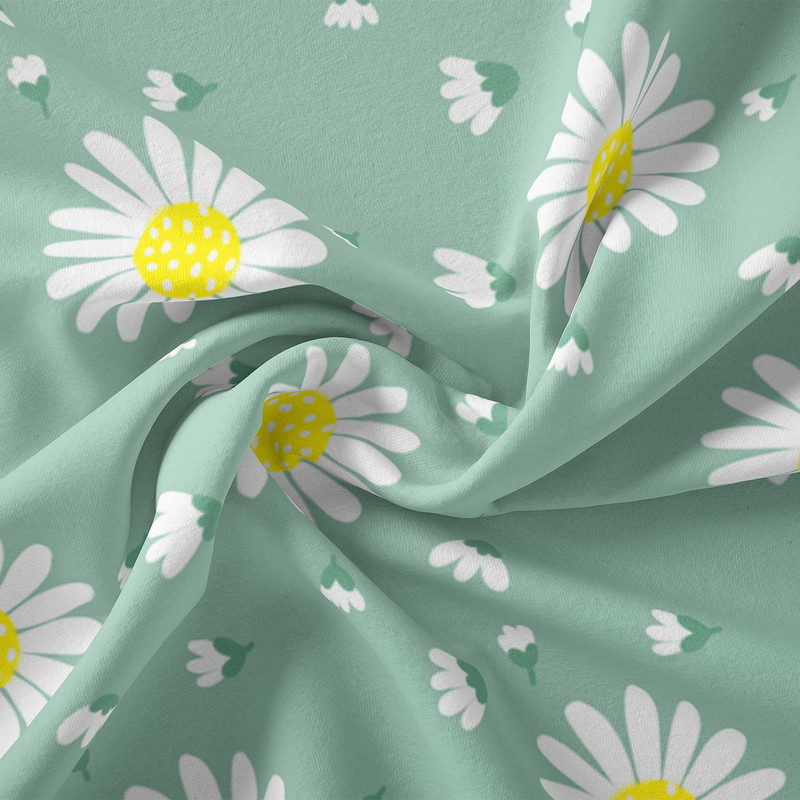 پارچه ملحفه عرض 1.5 متر پارچه باما مدل مخمل طرح گل بابونه کد 5011166 رنگ سبز