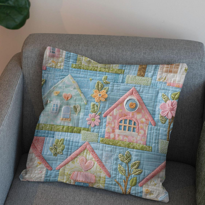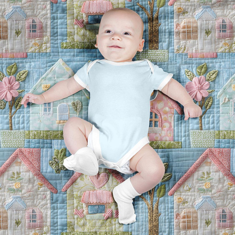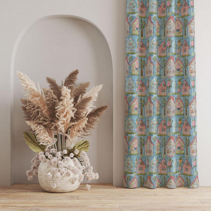 پارچه ملحفه عرض 1.5 متر پارچه باما طرح سه بعدی خانه رویایی کد 5013519 رنگ آبی روشن