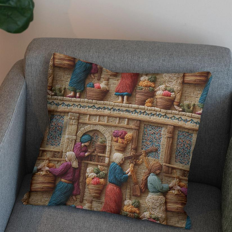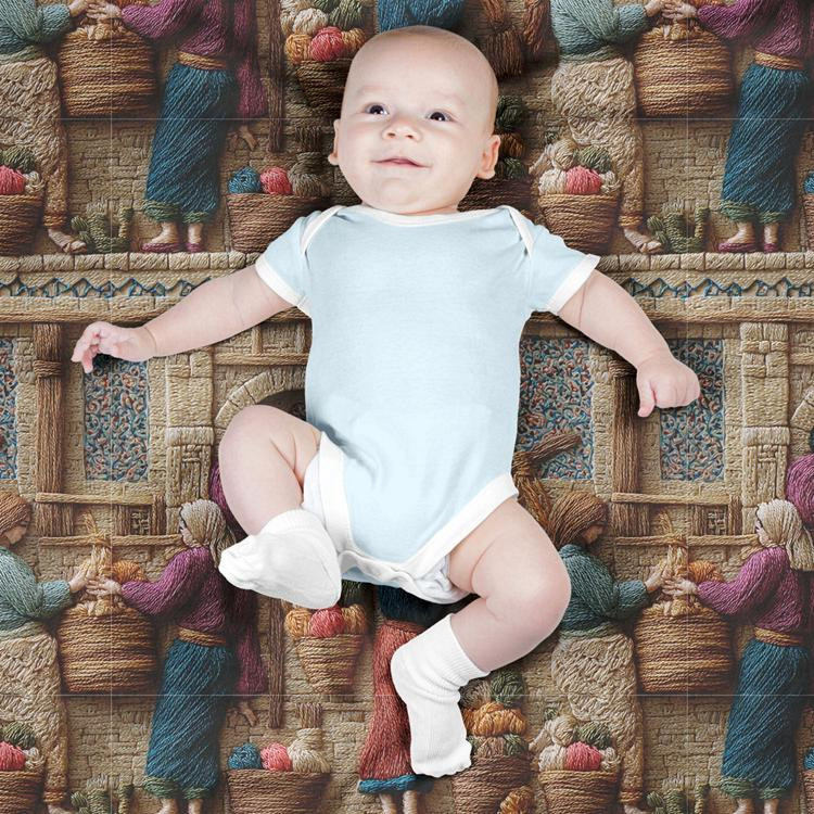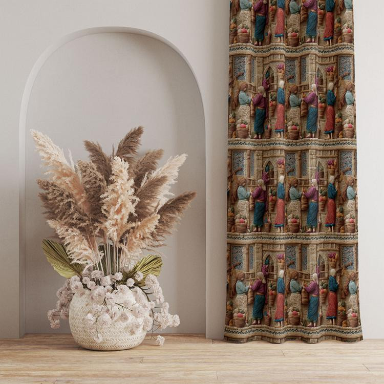 پارچه ملحفه عرض 1.5 متر پارچه باما طرح پنج بعدی نوستالژی بازار کد 5014245 رنگ قهوه‌ای روشن