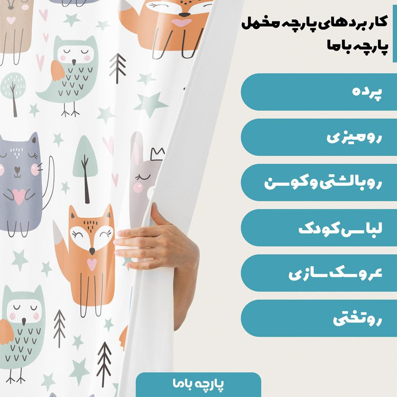 سایر توضیحات : بسته بندی اختصاصی پارچه باما پارچه مناسب برای : روبالشتی ، کوسن ، پرده ، عروسک سازی ، جامدادی ، کیف لوازم آرایش ، لباس کودک ، روتختی ، رومیزی و ...