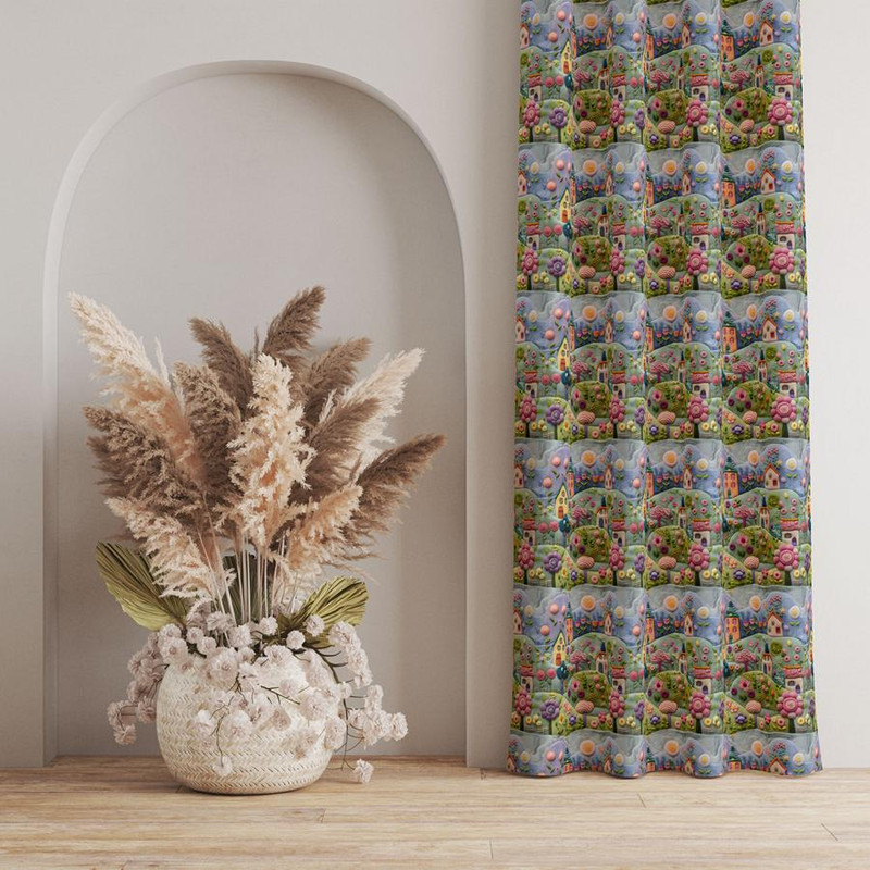 پارچه ملحفه عرض 1.5 متر پارچه باما طرح پنج بعدی خونه باغ کد 5013635 رنگ آبی 1 متری