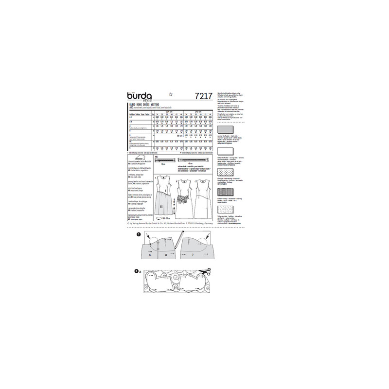 الگو خیاطی پیراهن مجلسی زنانه بوردا استایل کد 7217 سایز 34 تا 44 متد مولر- محتوای این پکیج تولید شرکت بوردا است. الگوهای بوردا استایل چند سایزه هستند. دفترچه ی چند زبانه ی اصلی استفاده از الگو در این پکیج ارائه شده است. برای کاربران فارسی زبان راهنمای کلی استفاده از الگوها هم ارائه شده است.این الگوها در ابعاد واقعی لباس روی شیت بزرگ به صوت پلات چاپ شده و تصویرهای روی جلد به صورت الگوهای چند سایزه داخل بسته قرار دارند.