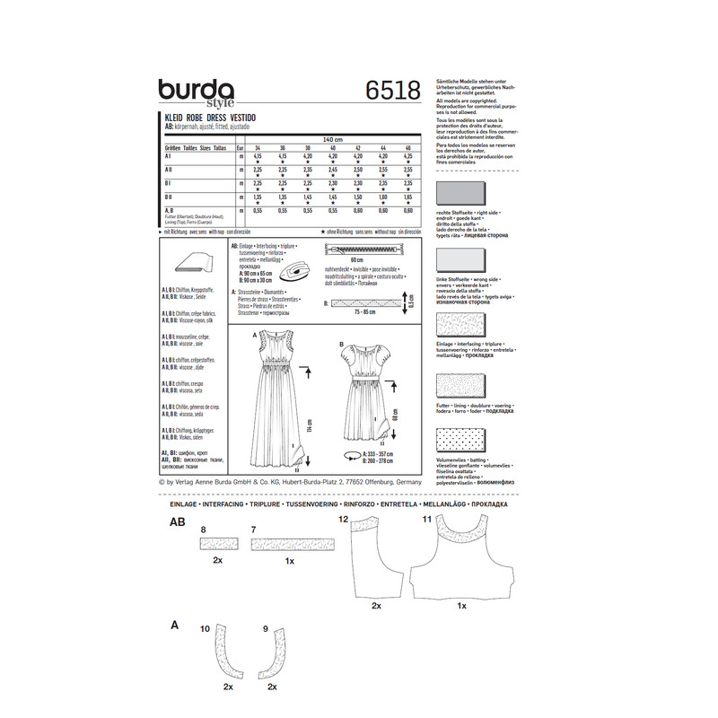 الگو خیاطی پیراهن مجلسی زنانه بوردا استایل کد 6518 سایز 34 تا 46 متد مولر- محتوای این پکیج تولید شرکت بوردا است. الگوهای بوردا استایل چند سایزه هستند. دفترچه ی چند زبانه ی اصلی استفاده از الگو در این پکیج ارائه شده است. برای کاربران فارسی زبان راهنمای کلی استفاده از الگوها هم ارائه شده است.این الگوها در ابعاد واقعی لباس روی شیت بزرگ به صوت پلات چاپ شده و تصویرهای روی جلد به صورت الگوهای چند سایزه داخل بسته قرار دارند.