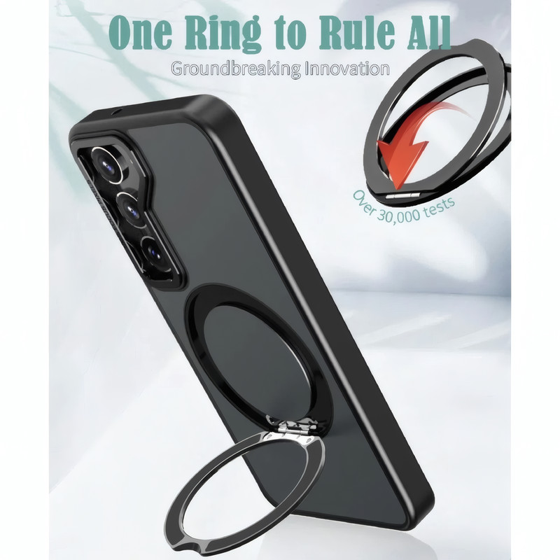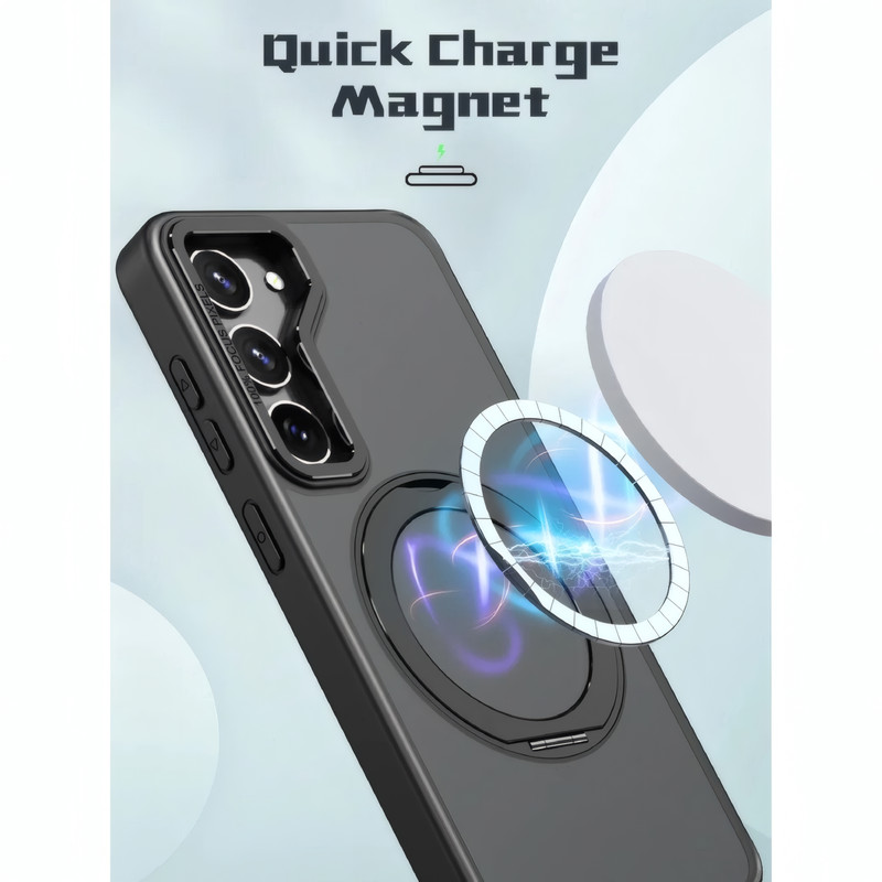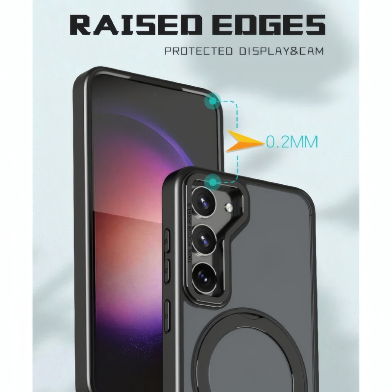 کاور Revolve، با طراحی زیبا و کاربری خاص خود، انتخابی ایدهآل برای محافظت از گوشی شماست. این کاور با استفاده از مواد TPU و اکریلیک ساخته شده و از طریق فناوری ضدخش و مقاوم در برابر ضربه، به خوبی از گوشی شما محافظت میکند. طراحی مدرن و قابلیت چرخش ۳۶۰ درجه استند فلزی این محصول، امکان استفاده آسان و نگهداری ایمن گوشی را در حالتهای مختلف فراهم میآورد. فریم دوربین فلزی این کاور با فرآیند الکتروپلیتینگ تولید شده که مقاومت آن را در برابر ضربه افزایش میدهد و زیبایی خاصی به محصول میبخشد. این کاور با برخورداری از قابلیت اتصال مغناطیسی، به شما اجازه میدهد تا به راحتی از شارژرها و سایر اکسسوریهای مگسیف بدون نیاز به جداسازی کاور بهرهمند شوید. لبههای این کاور به گونهای طراحی شدهاند که علاوه بر پوشش کامل دستگاه، از تماس مستقیم صفحه نمایش با سطوح جلوگیری میکنند. همچنین، دکمههای آن به شکلی حساس و دقیق طراحی شدهاند تا کنترل راحت و سریعی را برای شما به ارمغان آورند. طراحی ضد لغزش و مات آن نیز باعث میشود تا کاور به آسانی در دستان شما قرار گیرد و از جذب اثر انگشت جلوگیری شود.