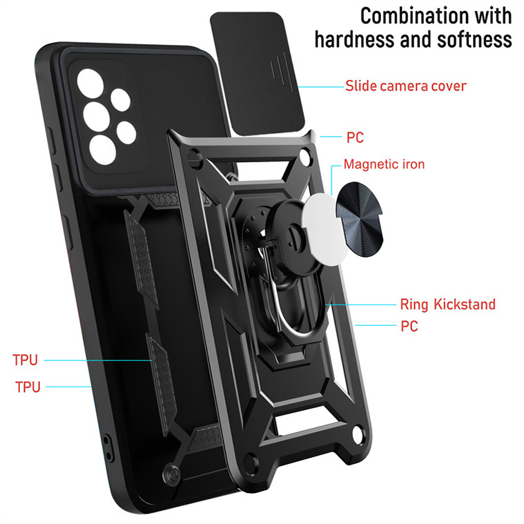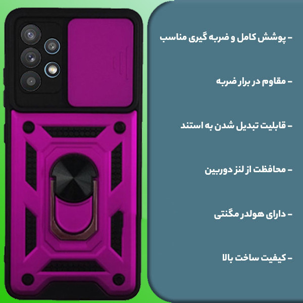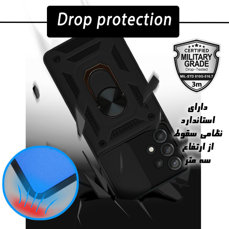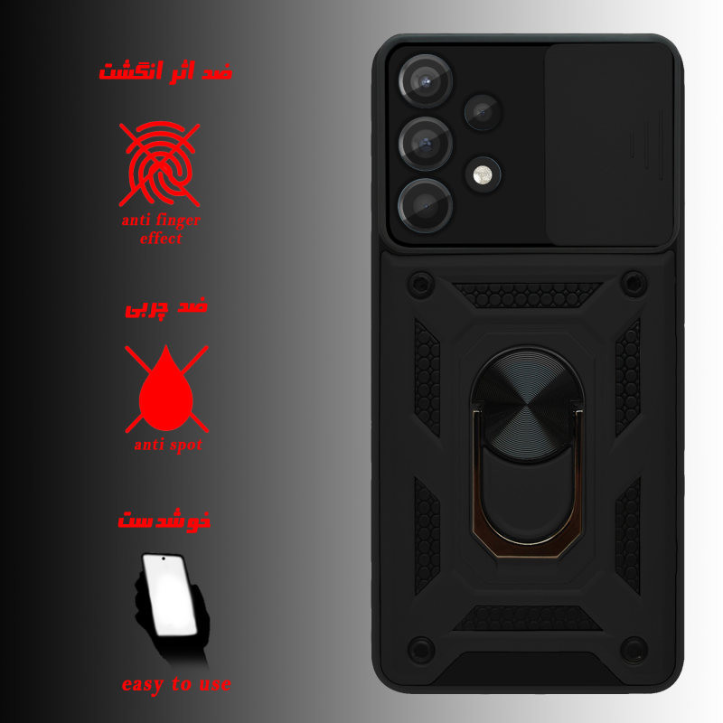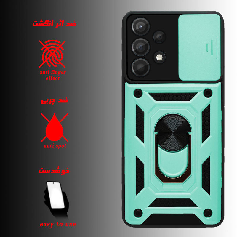 سری قابهای گاردتک مدل Dcamp2 ویژه افرادی با روحیه هیجانی و پر از شور و شعف طراحی شده است. . قاب محافظ گاردتک مدل Dcamp2 از مواد PU و TPU تولیده شدهاند. این نوع پلاستیک به دلیل دوام بسیار خوبی که دارد برای ساخت قطعات داخلی اتومبیل مورد استفاده قرار میگیرد. مواد پلاستیک PU و TPU به کار رفته در تولید این محافظها را به صورت دو لایه به کار گرفته است. در نتیجه این قابها، نسبت به سایر قابهای محافظ در برابر ضربه، خط و خش، سایش و سایر آسیبهای معمول که به گوشی سامسونگ Galaxy A13 4G Lite وارد میشود، ز ظاهر خاص این قابها که بگذریم باید گفت با طراحی استاندارد این محافظان گوشی، محل قرارگیری دوربین، سنسور و سایر پورتهای گوشی باز است و کاربران برای کار با این امکانات گوشی مشکلی نخواهند داشت. اما برای افزایش حس خشن این قاب روی کلیدهای گوشی با پوسته نازکی به صورت برجسته پوشیده شده است تا کاربران برای لمس کلیدها و کار با آنها مشکلی نداشته باشند.یکی از مهمترین ویژگی های این قاب وجود حلقه نگهدارنده در پشت قاب است که شما میتوانید از حلقه ای که به این قاب متصل است در موارد گوناگون استفاده کنید. برای نمونه: با قرار دادن انگشت دورن حلقه، گوشی کاملا در دست محکم می شود و احتمال افتادن گوشی از دست از بین میبرد. یا میتوانید با چرخاندن حلقه کاور را به حالت استند در بیاورید و به تماشای فیلم بپردازید. همچنین این حلقه نگهدارنده باداشتن حالت آهن ربایی می تواند به خوبی روی هولدرهای آهنربایی داخل خودرو بچسبد و دیگر نیازی به استفاده از برچسبهای آهن ربایی مجزا نخواهید داشت. همچنین دیگر نباید نگران به جای ماندن اثر انگشت بر روی قاب گوشی خود نباشید چرا که اثر انگشت بر روی این قاب نمیماند.