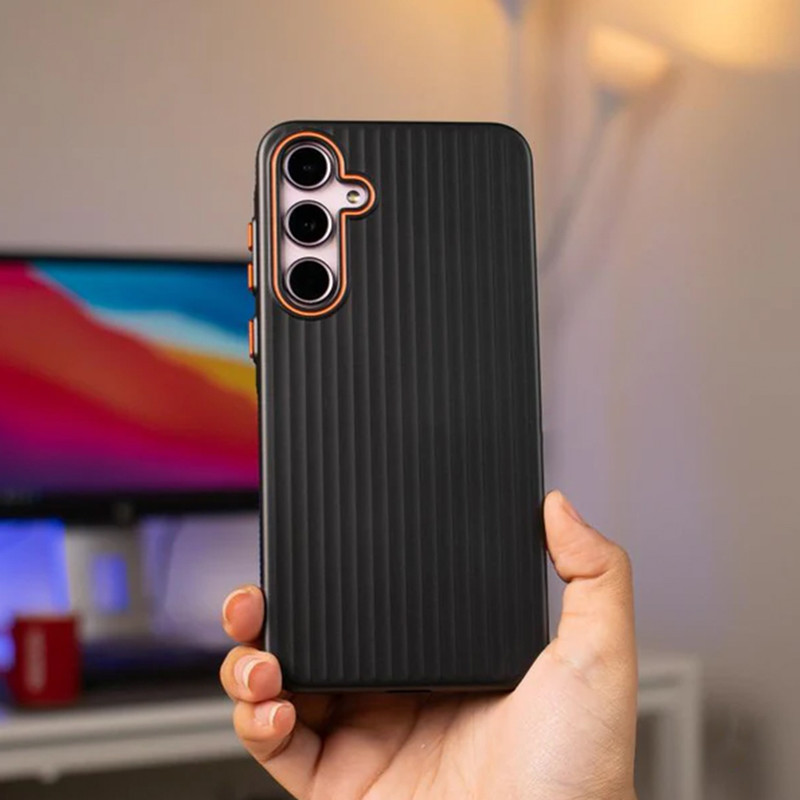 بافت موجدار ایجاد شده بر روی سطح قاب، ظاهری جذاب و استایل مدرن به آن میبخشد. این طراحی نهتنها از نظر زیباییشناسی مورد توجه است، بلکه باعث میشود گوشی کمتر از دست سُر بخورد و امنیت بیشتری را تأمین میکند. این ترکیب از جذابیت بصری و کاربردی بودن، این قاب را به گزینهای برتر در بازار تبدیل کرده است.