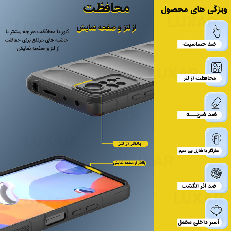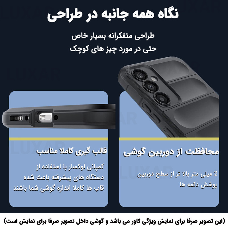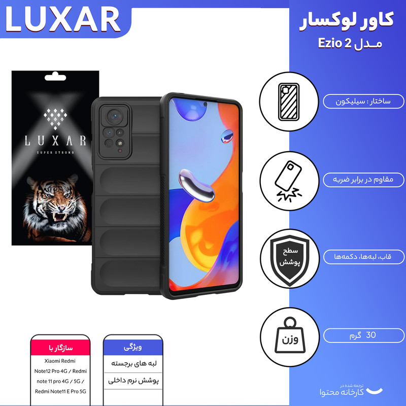 کاور Ezio از برند لوکسار از سیلیکون 100 درصدی خالص درجه (Grade A+) ساخته شده است که با توجه به طراحی انحصاری مقاومت 20 برابری نسبت به سایر مدل های دیگر موجود در بازار دارد و میتوان گفت با داشتن از این قاب گوشی خود را در مقابل ضربه بیمه کرده اید. همانطور که در آلبوم تصاویر مشخص است Ezio با ایربگ 10 قسمته طراحی شده است که هرگونه شک ناشی از ضربه را به خوبی دفع میکند. گفتنی است برای جلوگیری از خط و خط های داخلی آستر داخلی آن از مخمل استفاده شده است.این قاب با رعایت استاندارد های سقوط ، گواهی نامه هایی شامل U.S Military Grade را دریافت کرده که یعنی در برابر سقوط هایی از ارتفاع 3 متر مقاوم است . از دیگر مشخصات Ezio میتوان به برآمدگی 0.5 میلیمتری بالاتر از صفحه نمایش و دوربین اشاره کرد که محافظت گوشی را دو چندان میکند . اطراف این قاب رده های وجود دارد تا گوشی از دست سر نخورد و استایل پشت گوشی نیز به گونه ای است که مطابق با ارگونومی انگشت دست ساخته شده است تا با خوش دستی هر چه تمام تر همراه باشد . همچنین استایل کلاسیک و انحصاری این قاب باعث شده که فروش خوبی را در سطح جهانی تجربه کند.