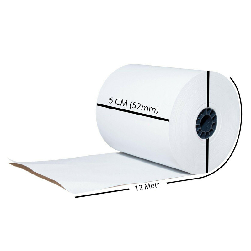 رول کارتخوان حرارتی سایز استاندارد به طول 12 متر و عرض کاغذ 6 سانتیمتر (57 میلیمتر)، مناسب و سازگار برای کلیه کارتخوان های کشور میباشد و قابل استفاده در ماشین حساب و ترازو های یا پرینتر های با این سایز است.