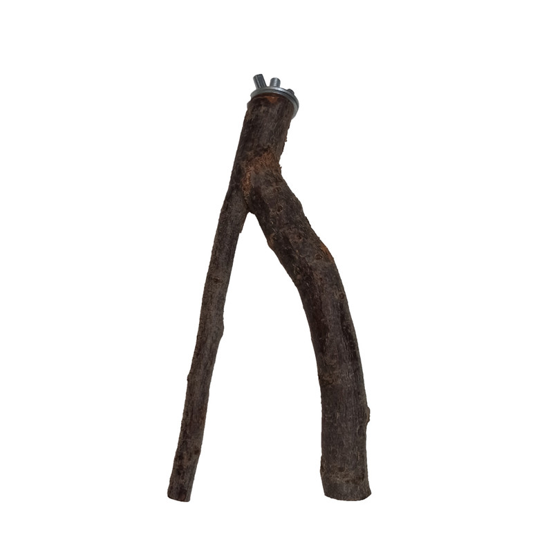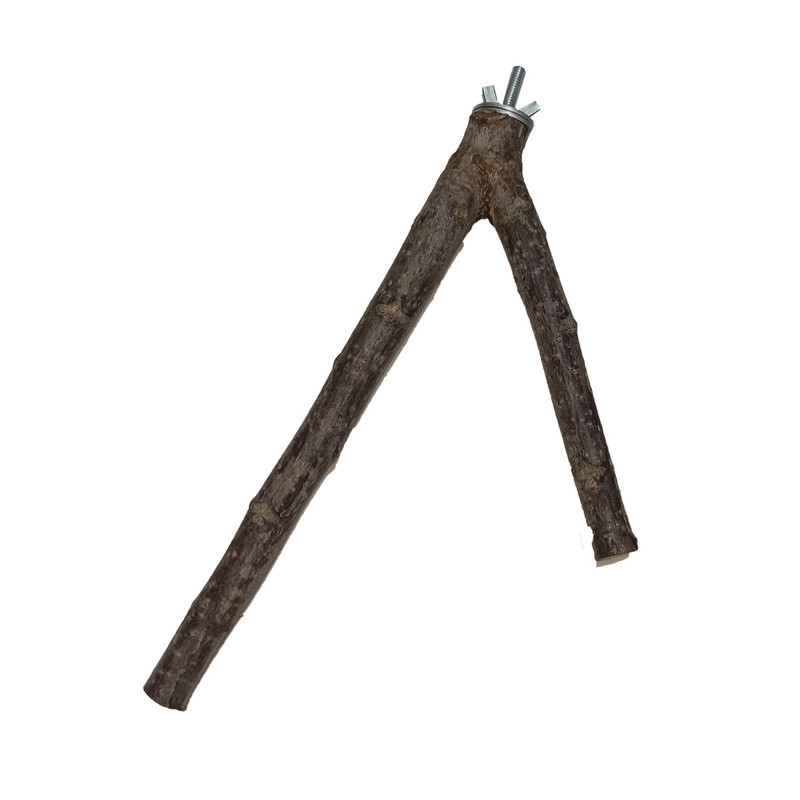 برای استراحت و نشستن پرندگان خانگی خود در بیرون یا درون قفس از نشیمنگاههای چوبی و حتما ساخته شده از چوب طبیعی استفاده کنید..چراکه پرندگان عادت به جویدن چوب دارند و به همین دلیل چوبهای مصنوعی مشکلات فراوانی را برای پرندگان به وجود می اورد.این نمونه نشیمنگاه از چوب طبیعی با طول 20 سانتی متر و به شکل دو شاخه ساخته شده اند.ضمنا جهت بستن و محکم نگه داشته شدن نشیمنگاه به کناره قفس از بهترین مهره پروانه ای موجود در بازار استفاده شده است