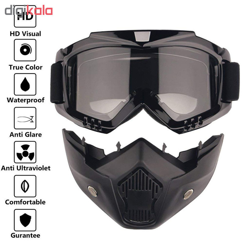 سایر توضیحات : دارای فک جدا شونده و پد محافظ صورت می باشد مناسب برای موتور سواری ، اسکی و اسکیت است عدسی عینک به طوری است که با فیلتر کردن رنگ آبی از خستگی چشم در پیست اسکی و کوهستان های برفی جلوگیری میکند.