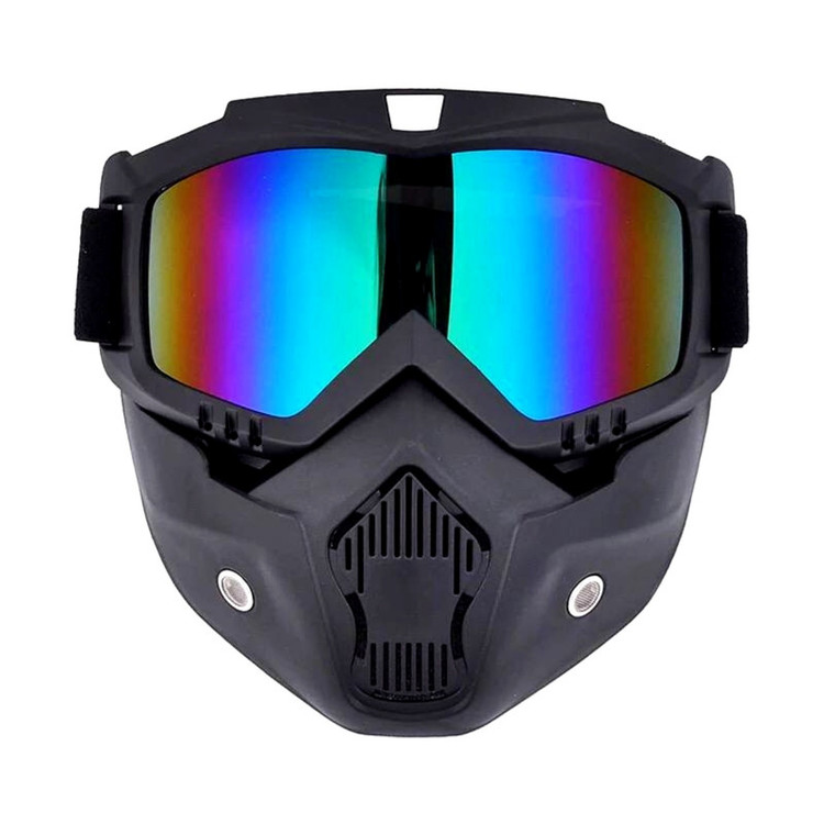 متاسفانه این کالا در حال حاضر موجود نیست. میتوانید از طریق لیست بالای صفحه، از محصولات مشابه این کالا دیدن نمایید.نقاب و عینک موتور سواری جدا شونده، ضد باد و بخار با قابلیت های ویژه برای ورزش هایی مثل اسکی، اسکیت، دوچرخه سواری، رالی. با پد جداشونده، فیلتر تنفسی و بند تنظیم. در بخش های داخلی این ماسک موتور سواری، که در تماس مستقیم با صورت است از ابر استفاده شده است.