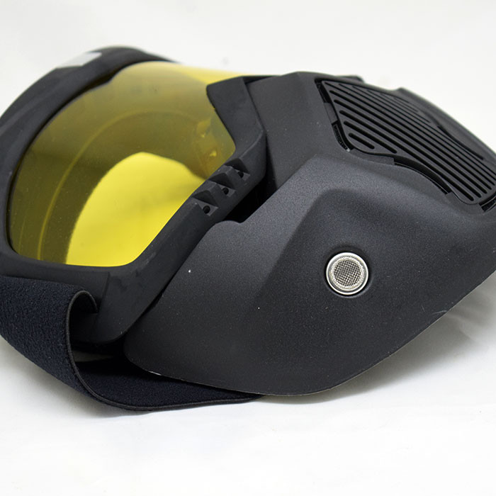 عینک goggles مناسب برای موتورسواری و اسکی و اسکیت میباشد و شیشه عینک به طوری است که با فیلتر کردن رنگ آبی از خستگی چشم در پیست اسکی و کوهستان های برفی جلوگیری میکند عینک goggles دارای ماسک فیلتر دار و با قابلیت دو تکه شدن هم استفاده به صورت عینک و هم استفاده به صورت عینک و فک مناسب برای تمام فصول و محیط میباشد کناره های داخل عینک ماسک از اسفنج نرم پوشیده شده که مانع از فشار به اطراف چشم میشود و می تواند همراه با کلاه کاسکت های موتورسیکلت بدون فک و بدون شیشه به راحتی استفاده شود