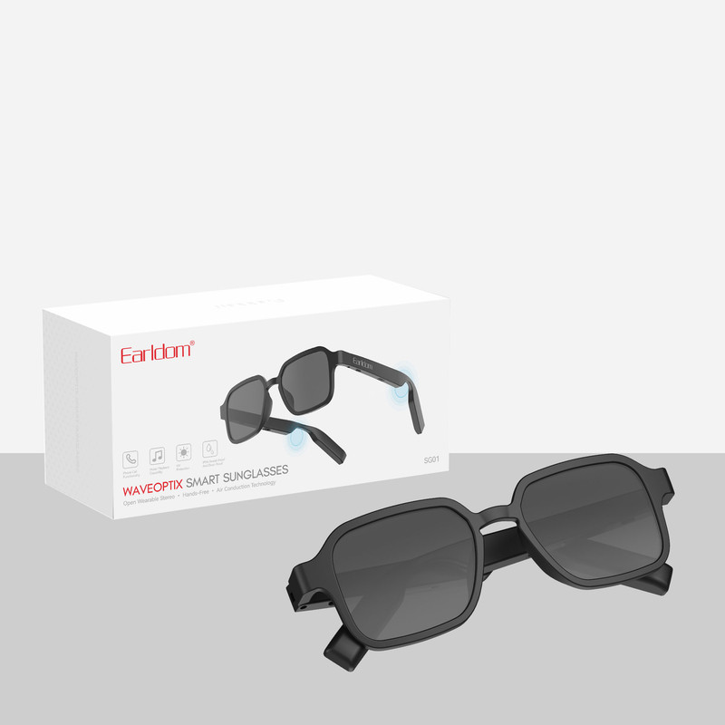 عینک Earldom WaveOptix Smart Sunglasses LASS SG01 یه گجت هوشمنده که ظاهرش مثل یه عینک آفتابی معمولیه، ولی در واقع توی دستههاش اسپیکر، میکروفون و بلوتوث تعبیه شده. یعنی بدون نیاز به هدفون، میتونی موسیقی گوش بدی، تماس بگیری و جواب بدی و همزمان چشمت هم در برابر نور خورشید محافظت بشه.در دستههای عینک دو تا اسپیکر ریز با تکنولوژی «Open Ear Audio» جاساز شده — صدا رو به سمت گوش هدایت میکنن، ولی گوش رو نمیپوشونن.از Bluetooth 5.0 استفاده میکنه → اتصال سریع، مصرف باتری پایینتر و تا شعاع حدود ۱۰ متر با گوشی ارتباط پایداره.لنزها پولاریزه و UV400 هستن → یعنی هم تابش فرابنفش رو کامل فیلتر میکنن، هم بازتاب روی سطوح براق (شیشه، آب، آسفالت) رو کاهش میدن.
