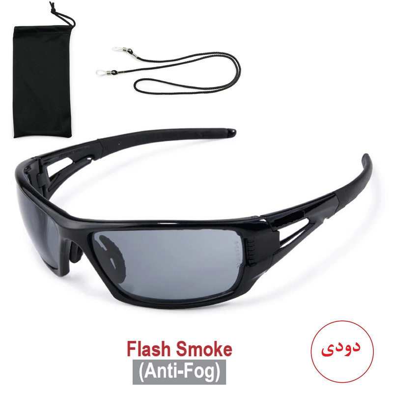 عینک های ,طبیعت گردی ، ورزشی ، ایمنی ، محصولی با کیفیت تولید شده در کشور تایوان می باشد . لنز این عینک ها از جنس پلی کربنات ضد خش تولید شده است که قدرت فیلتر کردن %99.9 اشعه مضر UV را دارد . لنز این مدل از عینک ( FLASH ) بصورت دو تکه می باشد که درجه پوشش 8 را روی چشم ها دارا می باشد . این مدل از عینک سبک بوده و تنها دارای 35 گرم وزن می باشد . پیچ لولا دسته ها از جنس فولاد ضد زنگ می باشد . قسمت قرارگیرنده بر روی بینی از جنس نرم و انعطاف پذیر بوده که باعث فشار و احساس ناخوشایند را از بین می برد .این عینک استانداردهای EN166 FCE, ANSI Z87.1 را دارا می باشد .سایز این عینک ها فری سایز می باشد و دارای دسته های انعطاف پذیری می باشد . این محصول در 6 رنگ تولید می شود که رنگهای ( دودی - زرد - شفاف ) خاصیت ضد مه/بخار ( ANTI FOG ) را دارا می باشند . رنگ فریم نارنجی فسفری دارای خاصیت آینه ای می باشد که این رنگ را مناسب فعالیت در فضاها با نور زیاد همانند روزهای برفی و پیست های اسکی می باشد .