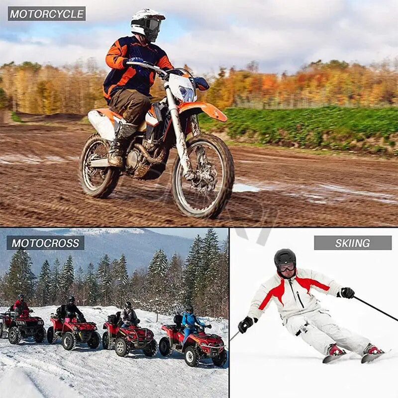 عینک goggles مناسب برای موتورسواری و اسکی و اسکیت میباشد و شیشه عینک به طوری است که با فیلتر کردن رنگ آبی از خستگی چشم در پیست اسکی و کوهستان های برفی جلوگیری میکند عینک goggles دارای ماسک فیلتر دار و با قابلیت دو تکه شدن هم استفاده به صورت عینک و هم استفاده به صورت عینک و فک مناسب برای تمام فصول و محیط میباشد کناره های داخل عینک ماسک از اسفنج نرم پوشیده شده که مانع از فشار به اطراف چشم میشود و می تواند همراه با کلاه کاسکت های موتورسیکلت بدون فک و بدون شیشه به راحتی استفاده شود