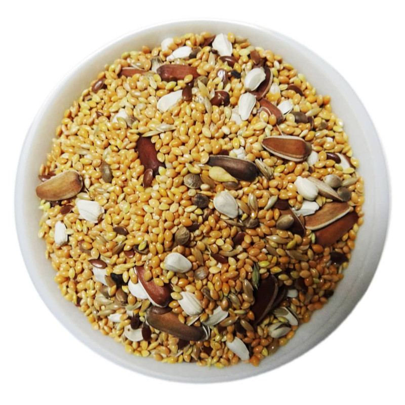 این محصول ترکیبی از دانه های مقوی مانند انواع تخم کتان، ارزن، شاهدانه، تخم آفتابگردان قرمز، کلزا، کافشه، ارزن، تخم گشنیز است و به جرات می توان گفت که از دانه های وارداتی که با قیمتی بسیار بالاتر به فروش می رسند و اغلب به تاریخ انقضای خود نزدیک شده اند، کیفیت بالاتری داشته و تازه تر و سالم تر است.