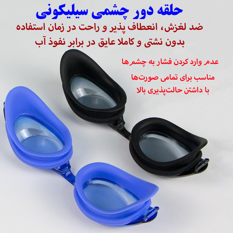 لنز پلیکربنات با وضوع دید عالی - لنز سه لایه آبگریز و ضد بخار - حلقه دور چشمی سیلیکونی بدون نشتی آب - بند سیلیکونی قابل تنظیم - مناسب برای انواع صورت - متریال بسیار با کیفیت