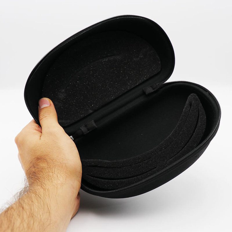 اقلام همراه : قاب عینک ورزشی قلاب دار، کاور مشکی رنگ عینک، ۳ کاور عینک، تست پلاریزه، دستمال عینک