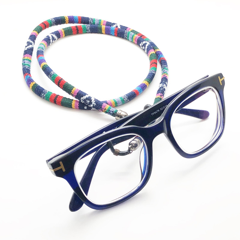بند عینک دستساز گالری عزیزی مدل 140204 از جنس پارچه بسیار خاص و کتان ساخته شده است و هنر دست زنان ایرانی است که با پارچه های خاص و دوخت ظریف شکل لوله ایی بند عینک را پدید آورده اند . این بند عینک دستساز به طول 70 سانتیمتر است که مناسب برای هر تیپ و سلیقه زنان و مردان است که بند عینک میتواند جلوه خاصی به صورت شما میدهد