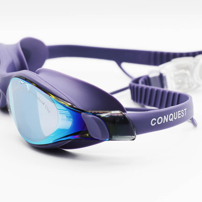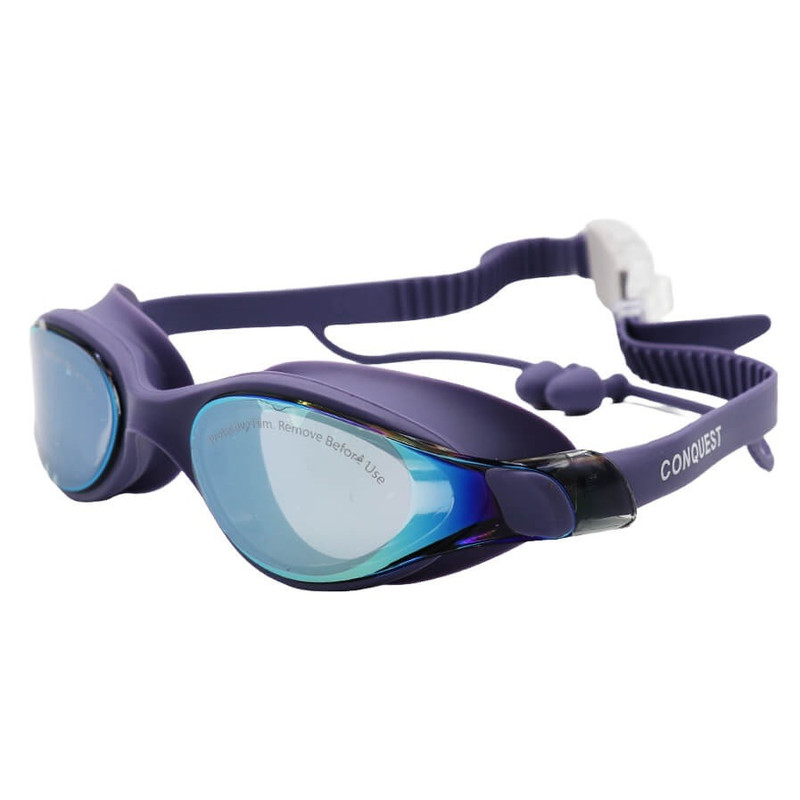 عینک شنا بنفش رنگ، از جنس سیلیکونی به همراه گوش گیر مدل 301-5 یک عینک ورزشی خاص و شیک است که مناسب فعالیت های ورزشی شنا میباشد. این عینک شنا با استاندارد جهانی CE تولید و طراحی شده است. بند این عینک شنا به رنگ بنفش بوده و فریم نیز به رنگ بنفش است. عدسی این عینک شنا، ضد بخار و آنتی فاگ Anti-Fog است. همچنین لنز این عینک شنا دارای فیلتر UV400 است که از چشمهای شما در برابر اشعه فرابنفش نور خورشید در زمان فعالیت ورزشی مراقبت میکند. این عینک شنا به دلیل طراحی که دارد هم یک عینک شنا مردانه و هم یک عینک شنا زنانه به حساب میآید. عدسی این عینک شنا حالت آینهای دارد و گوش گیر های آن بر روی بند عینک کار شده است. این عینک همراه با یک قاب به شما تقدیم خواهد شد که قاب این عینک شنا بسیار مقاوم و محکم بوده و همچنین بند دار است. جنس لنز این عینک شنا از جنس پلی کربنات درجه یک و باکیفیت است. بند این عینک شنا را میتوانید به راحتی از پشت آن تنظیم نمایید. کیفیت ساخت این عینک شنا برند کانکوئست درجه A بوده و از همچنین در زمان استفاده چشمهای شما را به خوبی میپوشاند.
