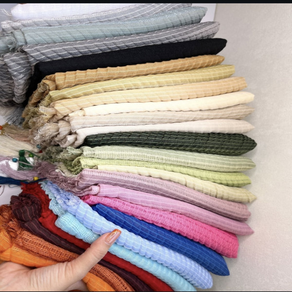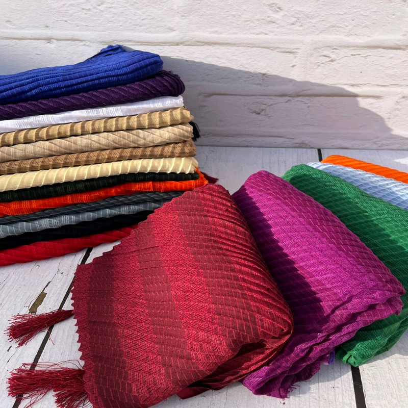 شال های پلیسه حصیری از الیاف نخی تهیه شده و بعد از شستشو به هیچ عنوان پلیسه ها باز نمیشود رنگ بندی کامل و جذابی دارد و بسیار نرم و خوش پوش است اینشالها مناسب تمامی فصول مخصوصا بهار و تابستان است