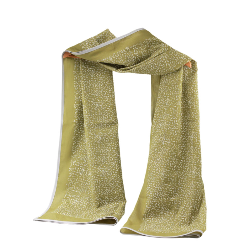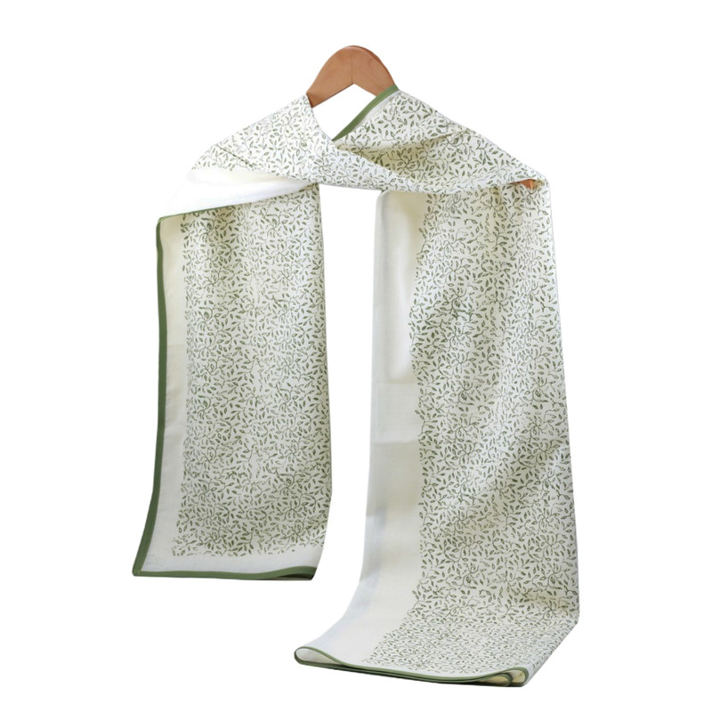 طرح روی شال بهصورت کاملاً دستی چاپ و تثبیت شده و کیفیت آن حتی پس از شستشوهای مکرر تغییر نمیکند.