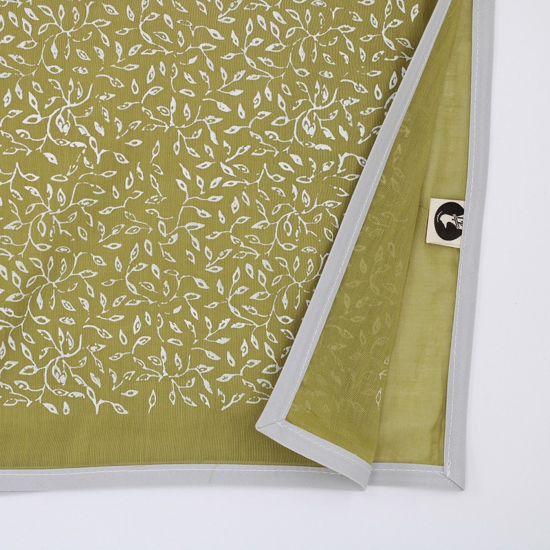 دورتادور کار با نوار اریب کتان بهصورت نواردوزی ظریف تزئین شده که کاملاً هماهنگ با رنگ پارچه یا طرح چاپی است.