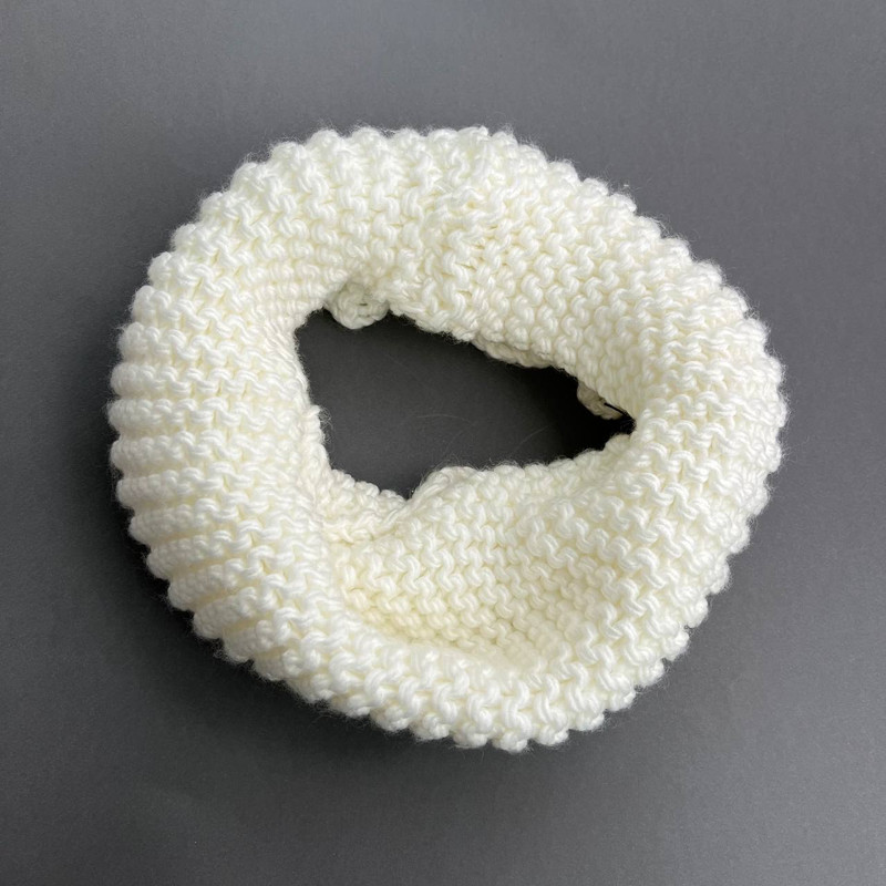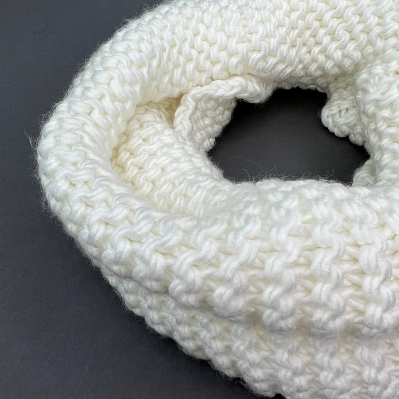 رنگ این شالگردن زنانه سفید است و بافت ان درشت است.