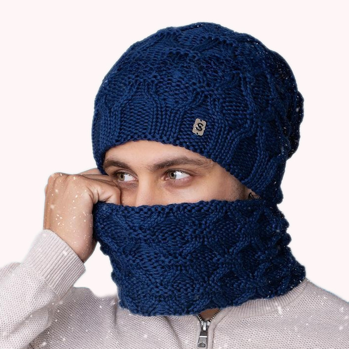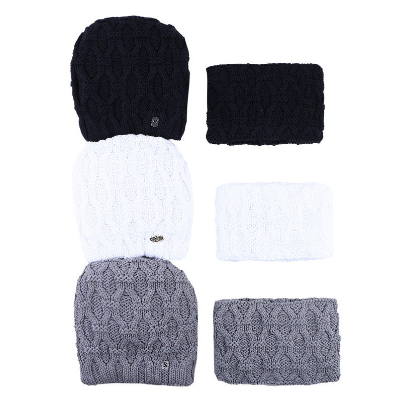 ست کلاه و شال گردن بافتنی سام مدل داخل خز سگک دار کد 548