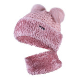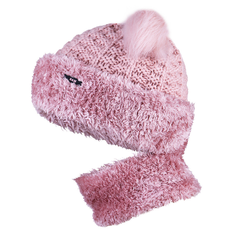 ست کلاه و شال گردن بافتنی سام مدل داخل خز طرح پوم دار کد 567