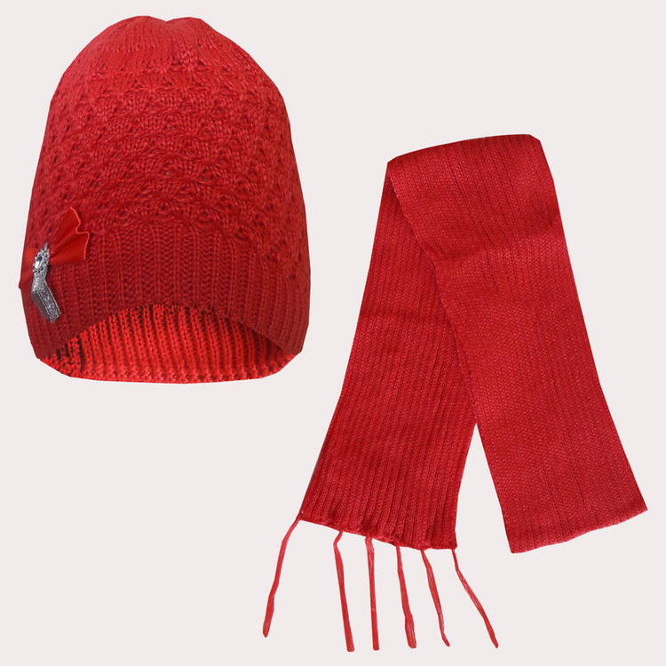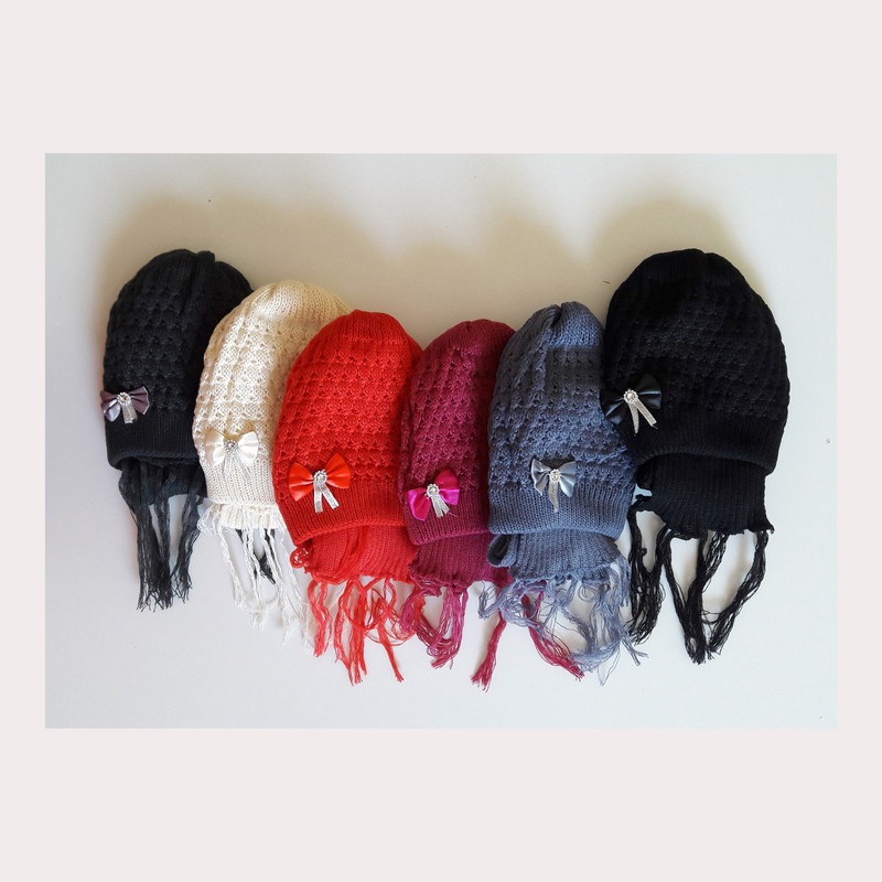 ست کلاه و شال گردن بافتنی دخترانه مدل درسا-1