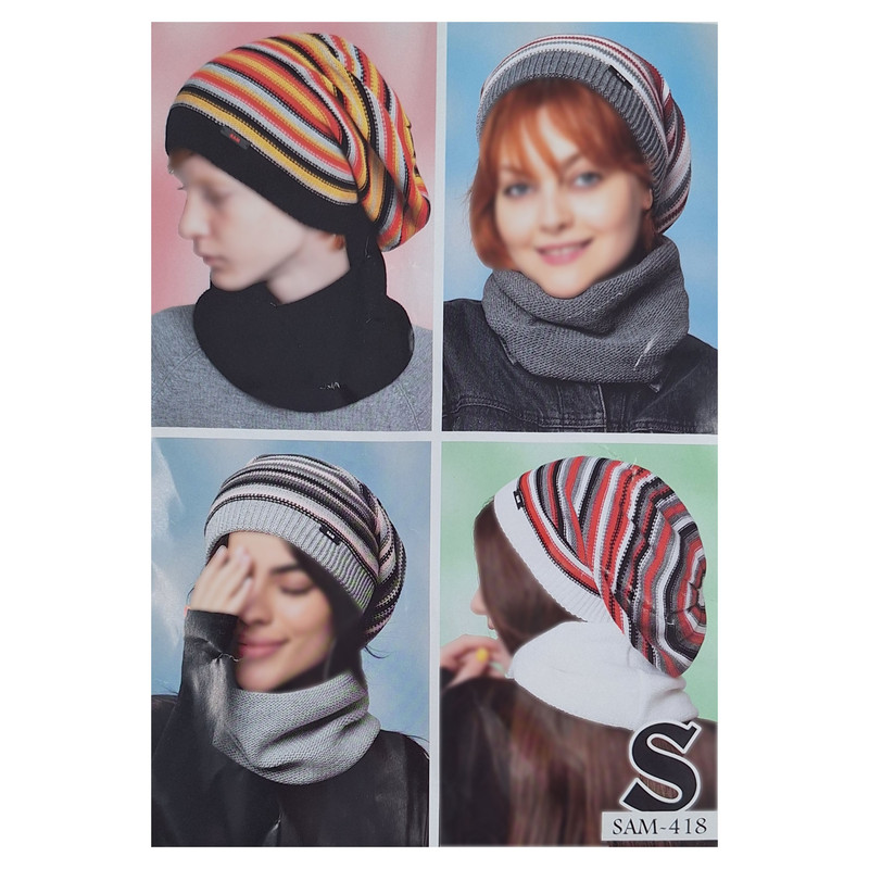 قابل شست و شو، گرم و مخصوص فصول سرد سال، مناسب برای رده سنی 15 سال به بالا، ست کلاه و شال سام 418، دارای رنگبندی متنوع