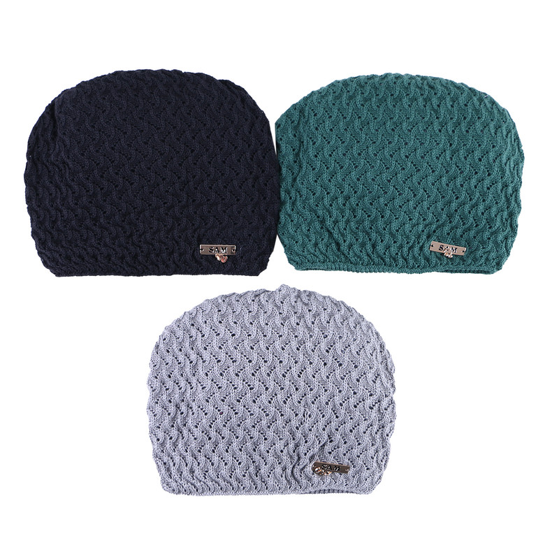 کلاه زمستانه، تولید شده توسط تولیدی سام، مدل ۵43، نمای بیرونی از بافت و نمای داخلی از جنس خز، دارای سگک در پشت کلاه، قابل شستشو، شستشو شده با نرم کننده خوشبو بعد از تولید، دارای رایحه خوش