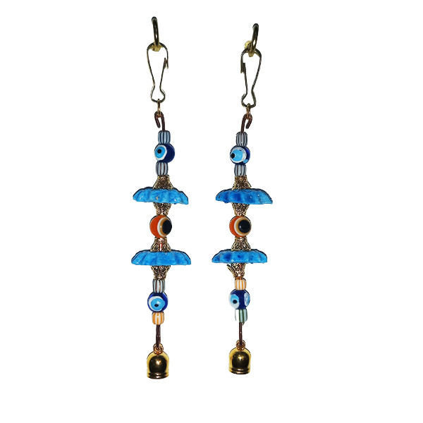 آویز قفس پرندگان مدل چشم نظر زنگوله کوچک مجموعه 2 عددی