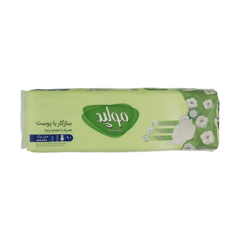 نوار بهداشتی برند مولپد با بسته بندی جدید و همان کیفیت قبل و بسیار عالی و ارزش خرید بالا. این مدل نوار 2 بسته نوار سایز ایکس لارج خیلی بزرگ هست که در هر بسته 9 عدد نوار موجود میباشد