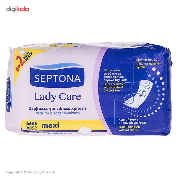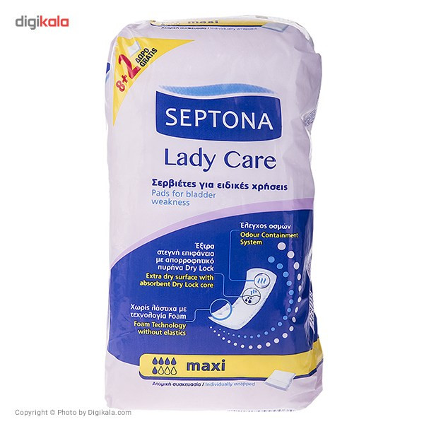 استفاده از پد روزانه برای همه ی بانوان توصیه میشود، البته انواع مختلفی از آن تولید میشود که بهترین نوع آن انتخابی از جنس کتانی و ضد حساسیت خواهد بود. پد بهداشتی سپتونا مدل « Maxi Lady Care» بسیار نازک بوده و از الیاف طبیعی و نرم ساخته شده به همین دلیل حساسترین پوستها هم مشکلی در استفاده از آن ندارند. این پد مشابه نوار بهداشتی عمل می کند و باعث جدب ترشحات می گردد بدین ترتیب مانع از تجمع باکتریها می گردد که استفاده از آن، از عفونت جلوگیری میشود. در هنگام خرید نوار بهداشتی و پد دقت کنید که از جنس کتان و مرغوب استفاده کنید تا باعث ایجاد حساسیت نشود. این محصول نه تنها به عنوان پد روزانه قابل استفاده خواهد بود بلکه برای خانمهایی که به هر دلیل دارای افتادگی مثانه شدهاند قابل استفاده خواهد بود. این نوار در بسته بندی 10 عددی با سایز بزرگ و به صورت تکی قرار گرفته است که با قدرت جذب 5 از 8 به ایجاد حس خشکی کمک میکند. شرکت یونانی سپتونا سابقهای نزدیک به 40 سال دارد و در زمینهی تولید محصولات سلولزی و بهداشتی مانند انواع گوش پاککنها، پدهای پاک کننده صورت، پنبه، نوار بهداشتی و حتی شامپو و کرمهای مخصوص کودکان فعالیت دارد و کیفیت بالا و استفاده از مواد اولیه مرغوب و با کیفیت باعث شده افراد با هر نوع پوستی مشکلی در استفاده از محصولات آن نداشته باشند و برای تضمین این مورد محصولاتش را در آزمایشگاههای استاندارد اروپا مورد آزمایش قرار میدهد.